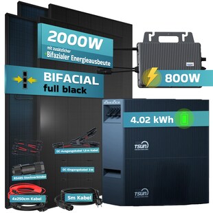 2400W Mikrowechselrichter Set mit 5m Kabel, für 4 Module, WLAN & Bluetooth, einstellbare Leistung 800W nur 199,00* nur 199,00€ Sternchen Fußnote, Details am Seitenende