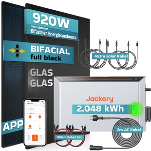 SUNNIVA® 920W Balkonkraftwerk mit 2,048 kWh Speicher Jackery HomePower 2000 Ultra, BIFAZIAL FULLBLACK komplett Steckdose, PV Solaranlage Komplettset mit Solarspeicher, 2x 460W N-Type Glas-Glas BIFA nur 659,00* nur 659,00€ Sternchen Fußnote, Details am Seitenende