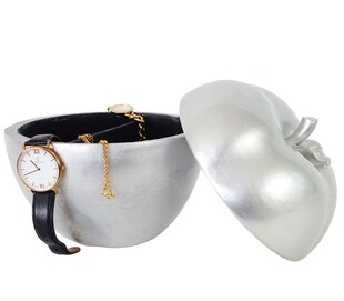 Schmuckdose 21cm, Polyresin Kosmetikdose Deko Figur Apfel, silber nur 28,99* nur 28,99€ Sternchen Fußnote, Details am Seitenende