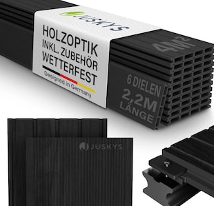 Juskys WPC Terrassendielen 2 m² – 220 cm Dielen, wetterfest inkl. Unterkonstruktion – Anthrazit1 m² = 75.00 EUR -25 % Sie Sparen 25 Prozent, UVP 199,99 UVP : 199,99€ ab 149,99* ab 149,99€ Sternchen Fußnote, Details am Seitenende