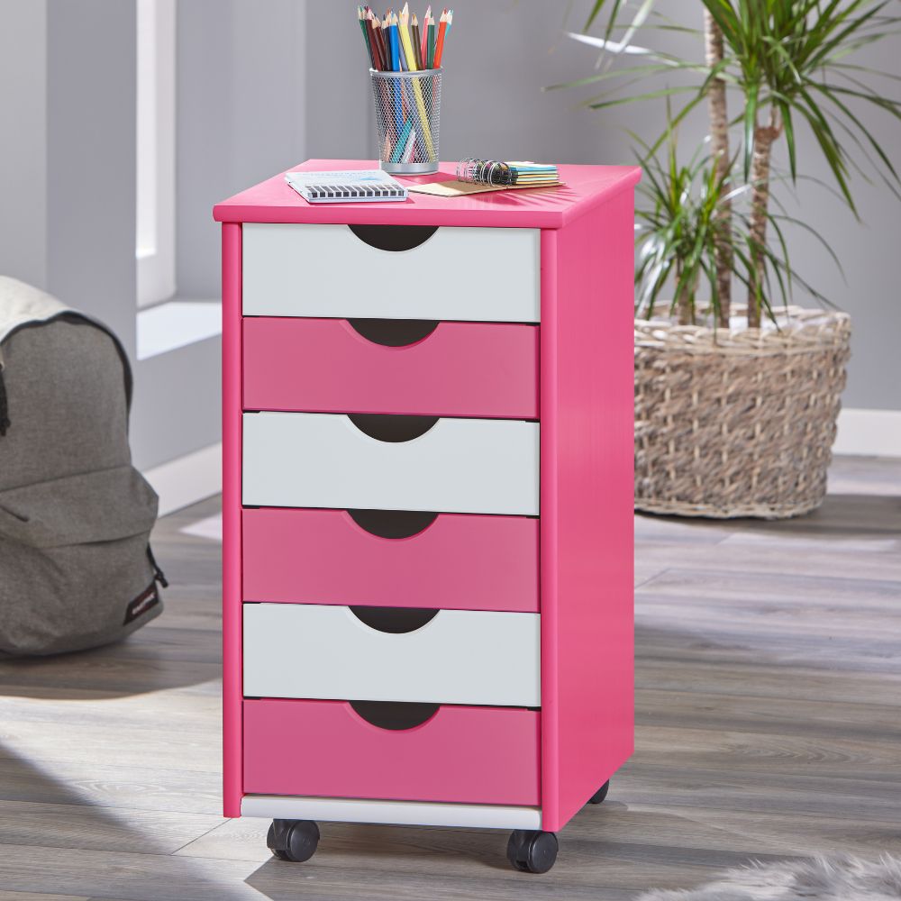 Der Pijii Kinderschreibtisch ist der perfekte Partner für konzentriertes Lernen und kreative Momente. Mit seinem fröhlichen Pink/Weiß Design bringt dieser Tisch Farbe und gute Laune in jedes Kinderzimmer. Das Gestell aus hochwertigem Kiefer Massivholz sorgt für Stabilität und Langlebigkeit, während die Tischplatte aus MDF eine glatte, widerstandsfähige Oberfläche bietet. Die dezent sichtbaren Holzmaserungen verleihen dem Tisch einen natürlichen Charme, der den modernen Look perfekt abrundet. Ein besonderes Highlight des Pijii Kinderschreibtischs ist seine Höhenverstellbarkeit von 63 cm bis 96 cm. So wächst der Tisch mit Ihrem Kind mit und sorgt immer für eine ergonomische Arbeitsposition, die die Haltung unterstützt und die Konzentration fördert. Die neigbare Tischplatte (von 5° bis 40°) ermöglicht zusätzlich eine flexible Anpassung für unterschiedliche Aktivitäten, sei es zum Schreiben, Zeichnen oder Basteln. Praktisch und funktional – der Schreibtisch verfügt über eine Schublade auf Holzschienen, in der kleine Utensilien ordentlich verstaut werden können. Zwei Buchhalterungen sorgen dafür, dass Bücher und Hefte immer griffbereit sind und das Arbeitsumfeld stets aufgeräumt bleibt. Der Pijii Kinderschreibtisch ist der ideale Tisch für jedes Kind, das auf der Suche nach einem ergonomischen, praktischen und gleichzeitig stilvollen Arbeitsplatz ist. Ein Möbelstück, das nicht nur das Lernen fördert, sondern auch ein echtes Highlight im Kinderzimmer darstellt.