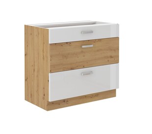 Küchen Unterschrank 80 cm Eiche Artisan + Weiß Hochglanz Vollauszug Soft-Close nur 349,99* nur 349,99€ Sternchen Fußnote, Details am Seitenende