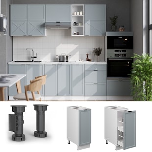 Respekta Küchenzeile ca 270 cm mit Kühlschrank-versch. Ausführungen - Grau -24 % Sie Sparen 24 Prozent, UVP 2.499,00 UVP : 2499,00€ ab 1.898,00* ab 1898,00€ Sternchen Fußnote, Details am Seitenende