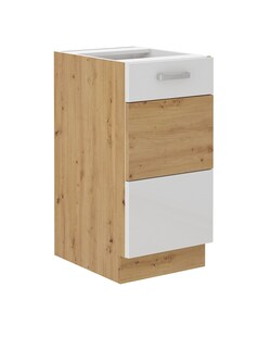 Unterschrank 40 cm Eiche Artisan + Weiß Hochglanz Küchenzeile Küchenblock Küche nur 119,99* nur 119,99€ Sternchen Fußnote, Details am Seitenende