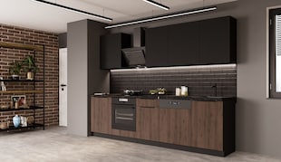 Küche MONZA LOFT 280 + 180 Küchenzeile Küchenblock Nussbaum Okapi Schwarz nur 1.599,99* nur 1599,99€ Sternchen Fußnote, Details am Seitenende 0% Finanzierung 0% Finanzierung möglich