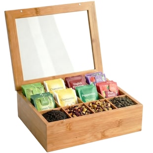 CLP Teebox für Teebeutel Holz Laprino, Teeaufbewahrung aus Bambus, Teekiste mit 12 Fächern, Deckel mit Sichtfenster und Magnetverschluss -26 % Sie Sparen 26 Prozent, UVP 25,99 UVP : 25,99€ 18,99* Aktueller Preis: 18,99€ Sternchen Fußnote, Details am Seitenende