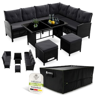 Juskys Gartenlounge Manacor schwarz - Sofa, Tisch, Hocker & Kissen inkl. Abdeckung - 8 Personen - Sitzbezüge in Grau nur 459,99* nur 459,99€ Sternchen Fußnote, Details am Seitenende 20 € Gutschein Kampagnen Artikel20 € Gutschein