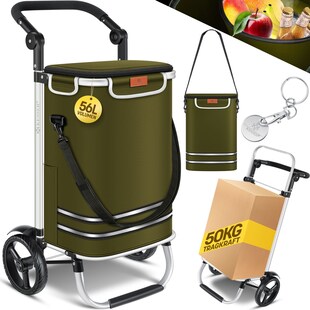 KESSER® Einkaufstrolley Treppensteiger mit Kühlfach klappbar mit 56L Kapazität und belastbar bis 50kg | 3in1 Trolley Sackkarre & Umhängetasche | Faltbarer Einkaufswagen inkl. Einkaufschip Kundenbewertung: 4,6 von 5 Sternen nur 59,80* nur 59,80€ Sternchen Fußnote, Details am Seitenende