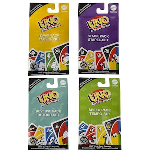 Mattel JCV55 BUNDLE sort. - Mattel Games - UNO Add-On Packs, Erweiterungen, Retour-/Tempo-/Stapel- & Tausch-Set mit barrierefreier Farbgestaltung nur 12,99* nur 12,99€ Sternchen Fußnote, Details am Seitenende