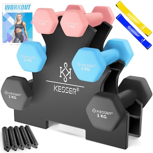 KESSER® Hantel-Set, 3 Paar, 1kg - 5kg, 12kg oder 18kg kurzhanteln mit Ständer Aufbewahrung, Fitnessstudio, Krafttraining, Hantelset rutschfeste Neopren, Mit Übungsheft, 2x Fitnessbänder ab 42,80* ab 42,80€ Sternchen Fußnote, Details am Seitenende 5 % Gutschein Kampagnen Artikel5 % Gutschein