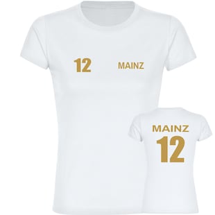 multifanshop Damen T-Shirt - Mainz - Trikot Nummer 12 gold - Druck gold metallic - Frauen ab 24,95* ab 24,95€ Sternchen Fußnote, Details am Seitenende