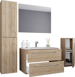 VCM 5-tlg. Waschplatz | Waschtisch Unterschrank 100 cm | Badmöbel Set mit Waschbecken Spiegelschrank Hochschrank | grifflose Schubladen | Komplettset Silora XL ab 1.129,00* ab 1129,00€ Sternchen Fußnote, Details am Seitenende
