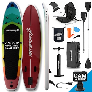 ArtSport Stand Up Paddle Board Retro Love mit Kajak-Set – Aufblasbares SUP Board Set bis 150 kg - Rot-Bunt -42 % Sie Sparen 42 Prozent, UVP 349,99 UVP : 349,99€ 199,99* Aktueller Preis: 199,99€ Sternchen Fußnote, Details am Seitenende