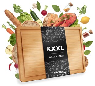 CLP Schneidebrett Holz groß XXXL 45 x 33 cm, Küchenbrett aus Bambus mit Anschlagskante und Saftrille, Holzbrett antibakteriell -27 % Sie Sparen 27 Prozent, UVP 21,99 UVP : 21,99€ 15,99* Aktueller Preis: 15,99€ Sternchen Fußnote, Details am Seitenende