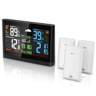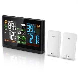 BEARWARE Wetterstation, Funk, Farbdisplay, 2 Außensensoren, Netzteil, Hygrometer, Wecker mit Snooze, DCF-Signal, Innen- & Außentemperatur -41 % Sie Sparen 41 Prozent, UVP 119,99 UVP : 119,99€ 69,95* Aktueller Preis: 69,95€ Sternchen Fußnote, Details am Seitenende
