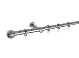 Ondeco Gardinenstange 1-lauf Wandmontage Endstück Ball Komplettgarnitur 16 mm mit Ringen und Faltelegehaken Farbe: Edelstahl-Optik, Größe: 200 cm ab 26,27* ab 26,27€ Sternchen Fußnote, Details am Seitenende