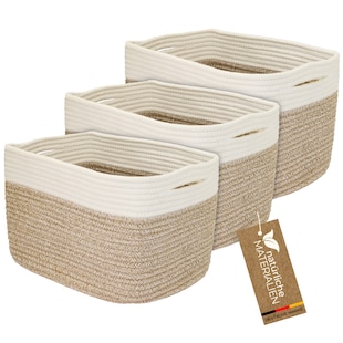HMF Aufbewahrungskorb mit versteckten Griffen, 3er Set, Korb aus Baumwolle, 37,5 x 25 x 22,5 cm, Weiß-Braun -23 % Sie Sparen 23 Prozent, UVP 51,99 UVP : 51,99€ 39,98* Aktueller Preis: 39,98€ Sternchen Fußnote, Details am Seitenende